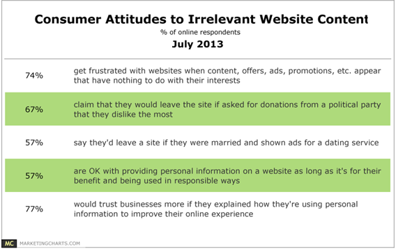 And not only do consumers get frustrated with irrelevant content, they are also willing to leave the site completely!