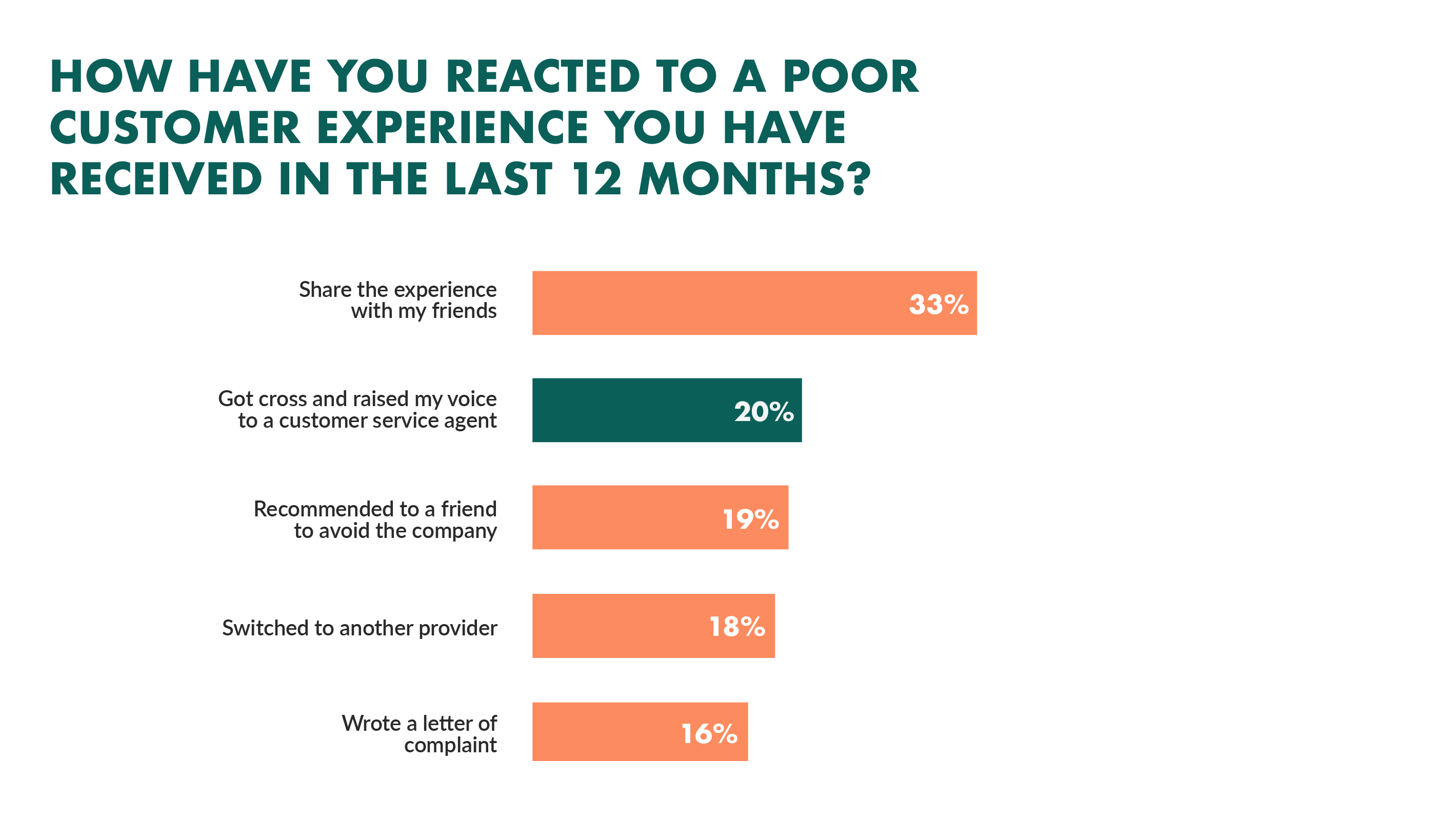Customers admit to “Getting cross and raising my voice” when they feel like they’re having a bad customer experience.