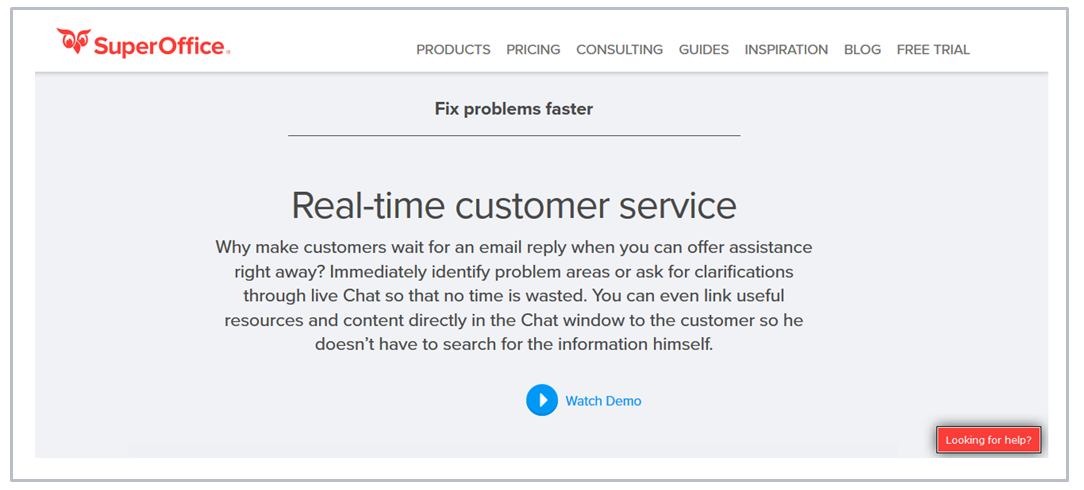 We have recently launched our own chat tool, called SuperOffice Chat. SuperOffice Chat can be added to any web page on your website and you control where your customers can initiate a chat session to talk to your team.