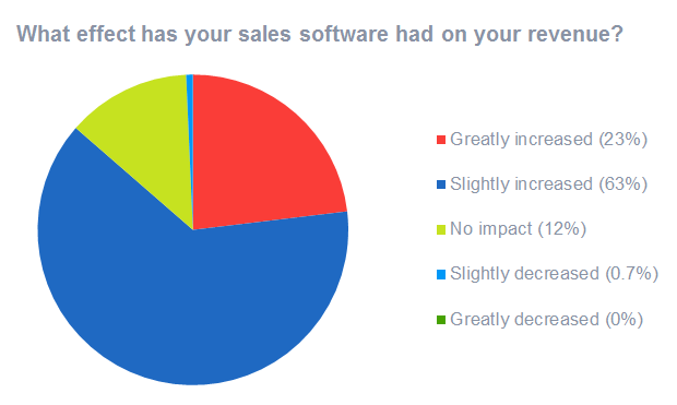 It’s clear from the research that sales reps who use sales optimization software as part of their daily work see huge gains, compared to those that do not. In fact, 63% of sales reps that invest in sales optimization software have seen an increase revenue with more than 20% of sales indicating that their revenue has greatly increased!