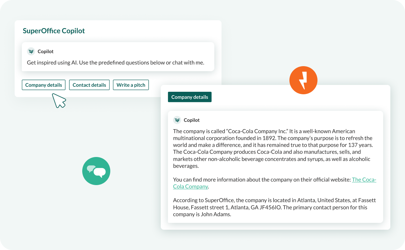 Say goodbye to searching the internet for the right answers. A simple chat interaction with SuperOffice Copilot can give you all the answers you need – instantly.