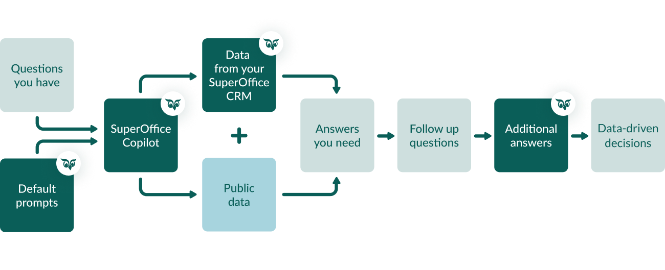 The best decisions consider all angles. SuperOffice Copilot taps into both your CRM and public sources to give you reliable answers – and insights – fast.