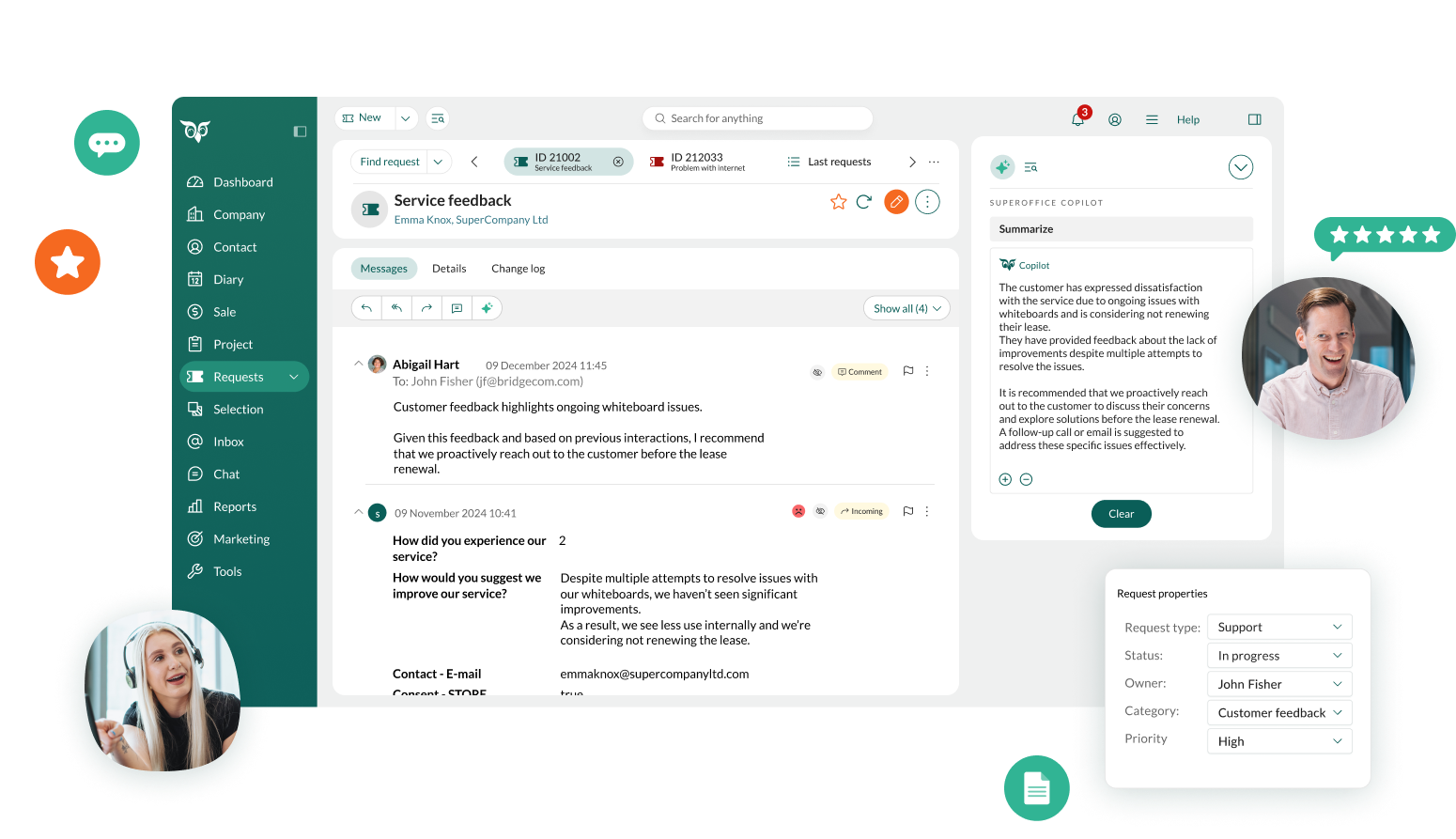 Aikaisemmin käytit aikaasi ja vaivaasi uusien asiakkaiden hankkimiseen – nyt voit sen sijaan keskittyä heidän palvelemiseensa. SuperOffice Servicen avulla pidät asiakkaasi jatkuvasti tyytyväisinä.